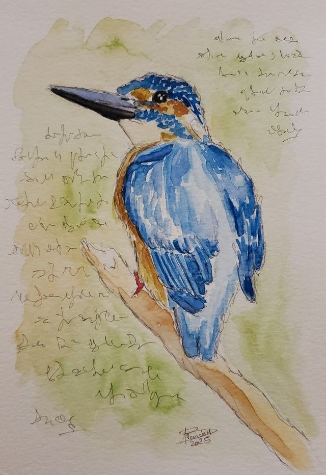 Peinture figurative intitulée "Martin-pêcheur"