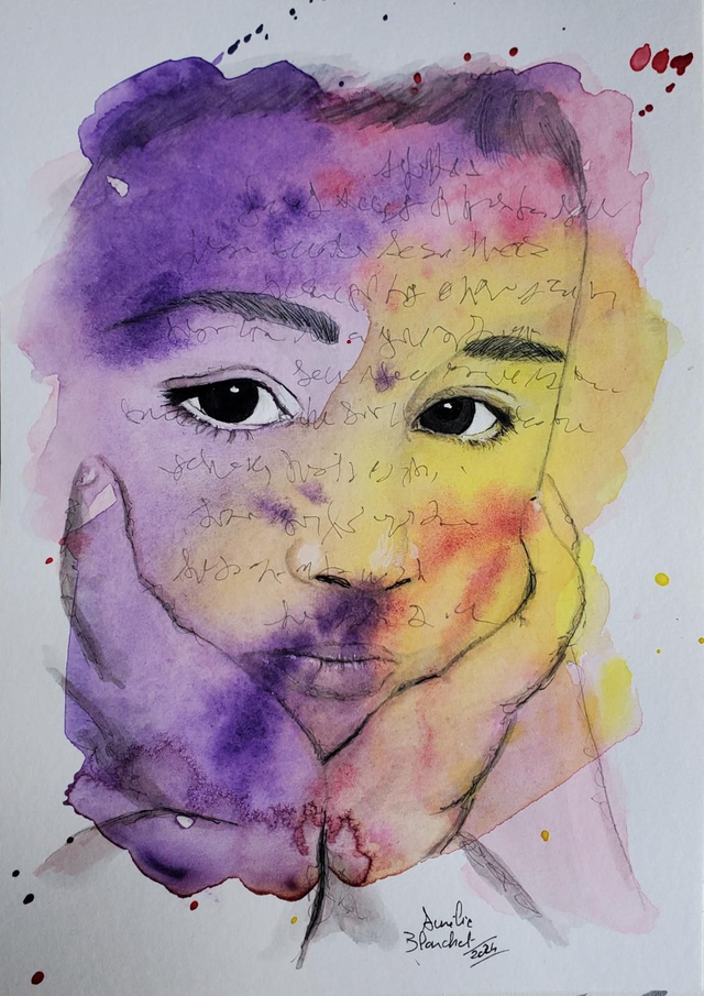 Cette aquarelle fait partie d’une série dédiée aux portraits d’enfants réalisés spécialement pour le calendrier 2025, où chaque regard raconte une histoire universelle et intemporelle.